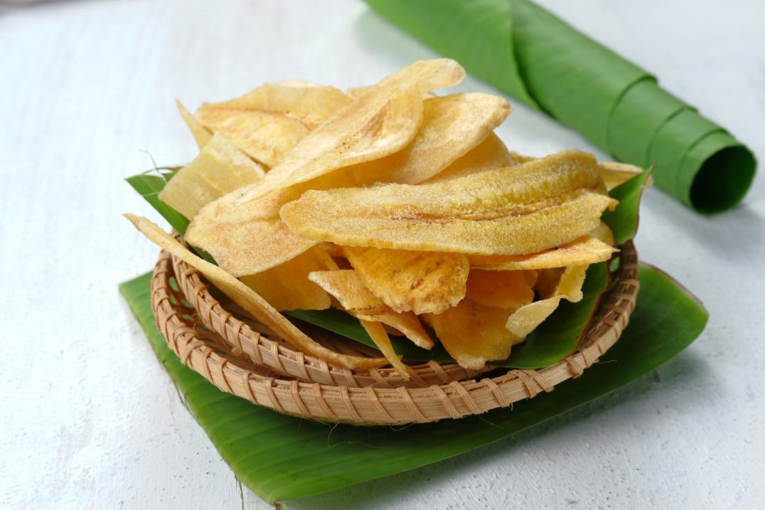 Keripik pisang renyah dari pisang pilihan, <br>gurih manis alami, digoreng higienis, camilan nikmat setiap saat. <br> Berat 1 Kg